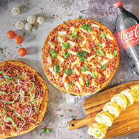 Tomato base, onion, capsicum, pineapple, roast chicken, mozzarella cheese and bacon.Choose one