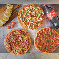 Deal 3$70.993 Large Pizzas ( Any Pizza ), 1 Garlic Bread, 1 1.25L Soft Drink- Deal 4$91.994 Large Pizzas ( Any Pizza ), 1 Garlic Bread, 1 1.25L Soft Drink